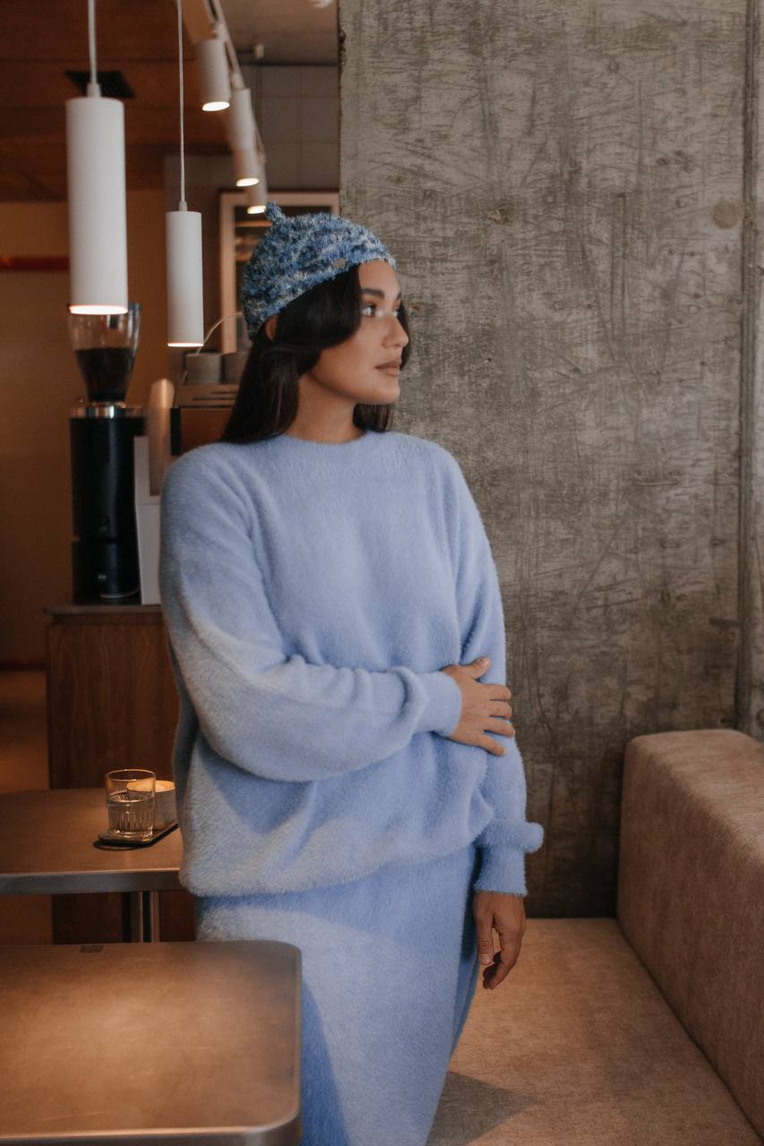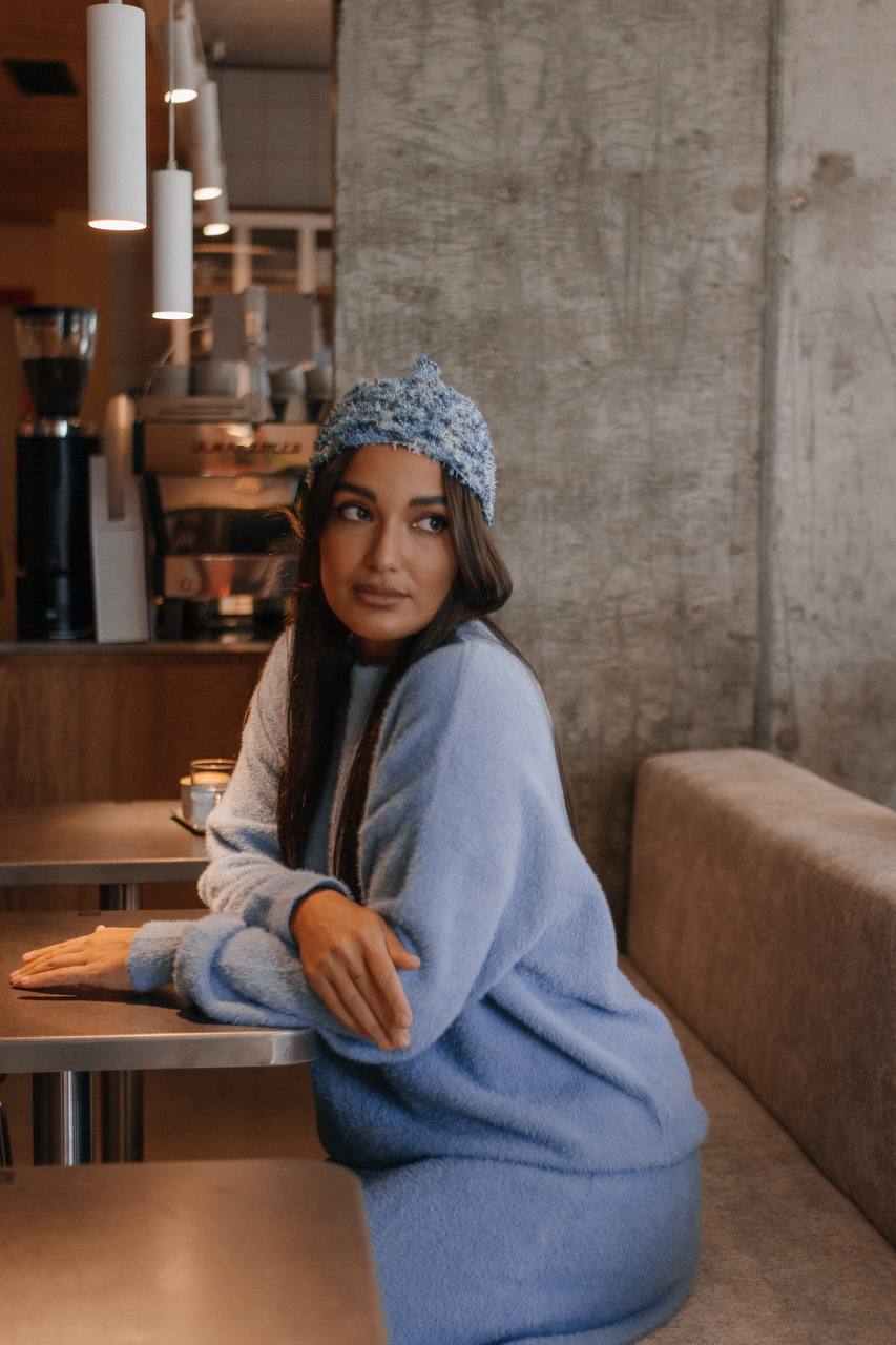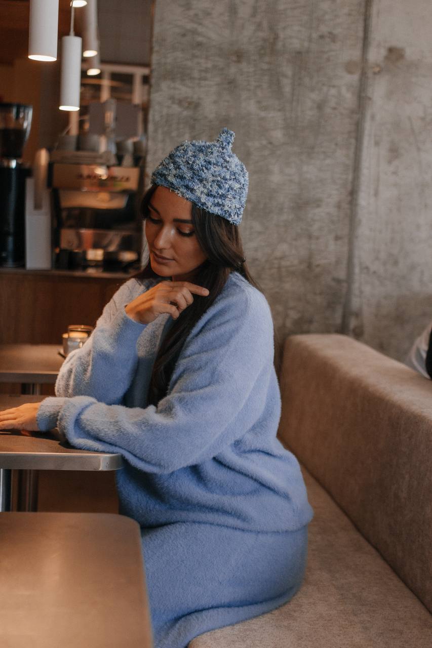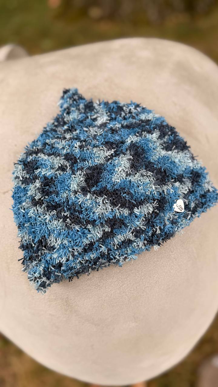 Каждая шапочка уникальна. Доступна в нескольких оттенках. Цвет: голубая