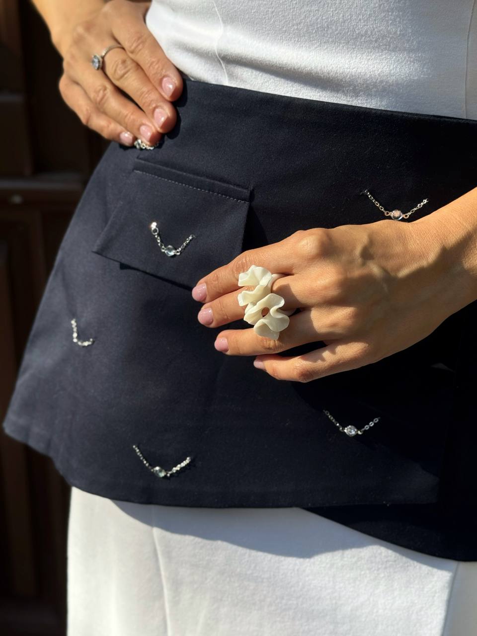 Манжеты, словно крылья бабочки, играют светом и добавляют образу лёгкую романтику. Они могут быть украшением для запястий, волос или талии, создавая невесомые акценты.