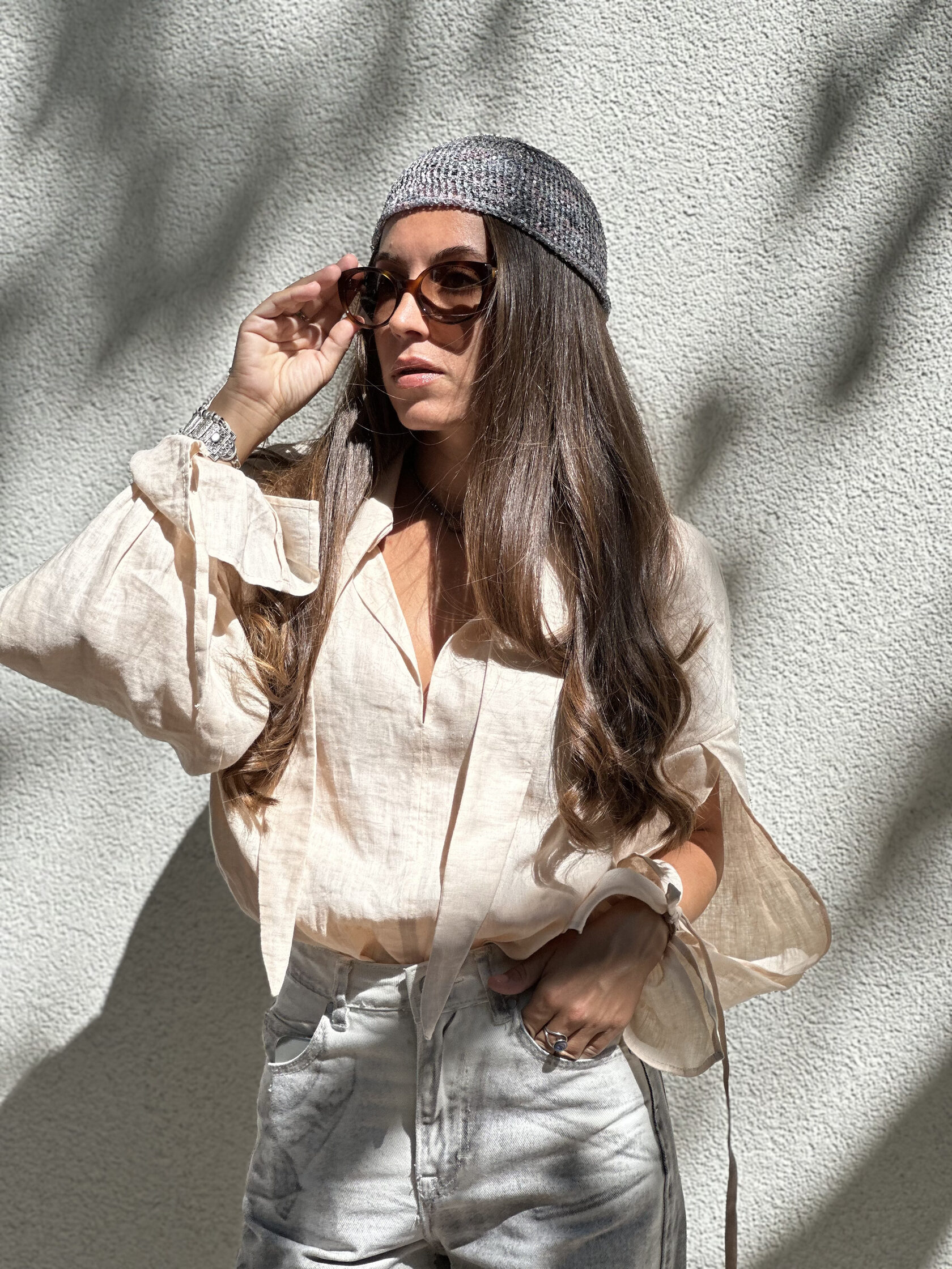Лёгкая шапочка с деликатным сиянием пайеток. Мягко садится по голове и становится стильным акцентом в образе. Добавляет нотку богемности и лёгкого блеска даже самым простым сочетаниям. Идеально сочетается с рубашками, платьями и костюмами, дополняя образ изящной деталью.